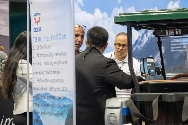 五菱工业的新款多用途高尔夫球车/社区车T200、T310融入了创新的设计理念和技术成果,综合实力强劲,现场吸引众多客户关注、咨询。
