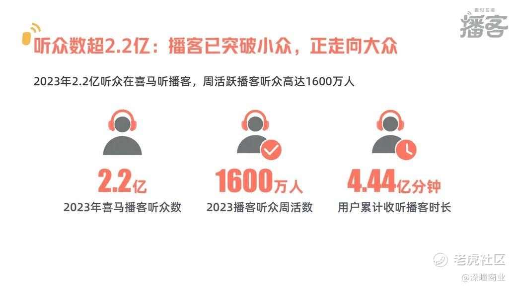 《2023喜马拉雅中文播客生态报告》显示,2023年在喜马拉雅等平台扶持和助推下,中文播客不再囿于小众圈层,正一步步向大众群体扩展;中文播客听众数超过2.2亿人,播客成为内容创作新蓝海;有50.2%的播客听众曾为播客内容付费,播客的商业化形式正日渐多元。