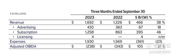 Paramount+订阅收入在23年第三季度飙升46%,但随着费用的增加,亏损仍然很大。该流媒体服务已经拥有6300万订阅用户,新订阅用户的增长正在放缓,在9月这个季度只增加了270万。