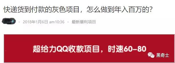 某专门做“快递到付”的灰产人士称,选对了货品,日入过万不是难事,每单赚20元,每天发500单即可,只要能做三四个月,就能赚够百万利润。(但同时他也叹气,只要有好的货品,同行肯定一拥而上,短时间就能把市场做烂,相反倒是向上文所说的纯骗的这种,“生命周期”会长一些)