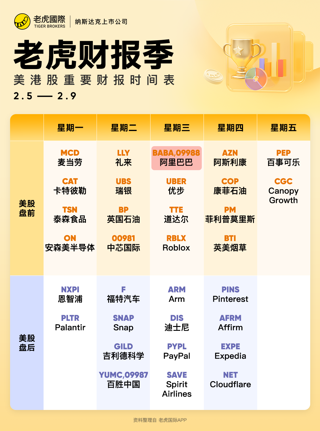 ⏰本周阿里巴巴,礼来,优步等财报重磅来袭,你睇好边家?