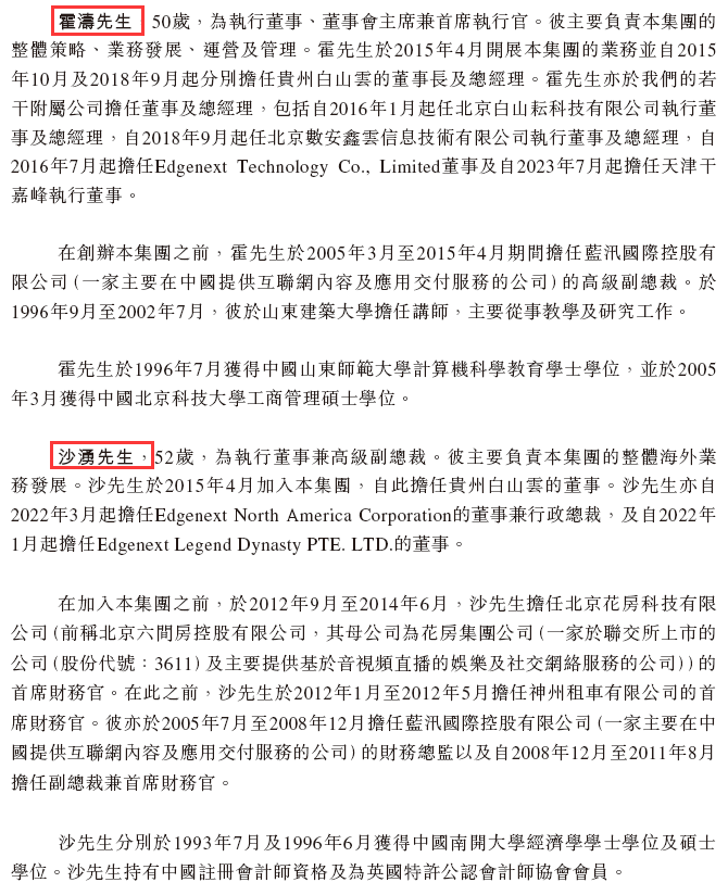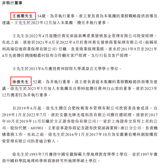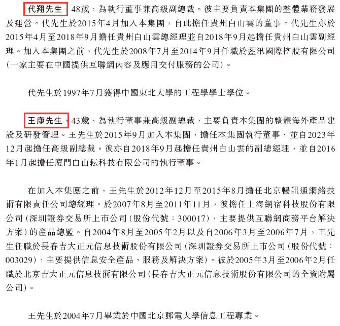 白山云科技董事会由9名董事组成,包括4名执行董事(霍涛先生、沙涌先生、代翔先生、王康先生)、2名非执行董事(王进阁先生、徐俊先生)、3名独立非执行董事(朱山先生、谭晓生先生、姬文婷女士)。