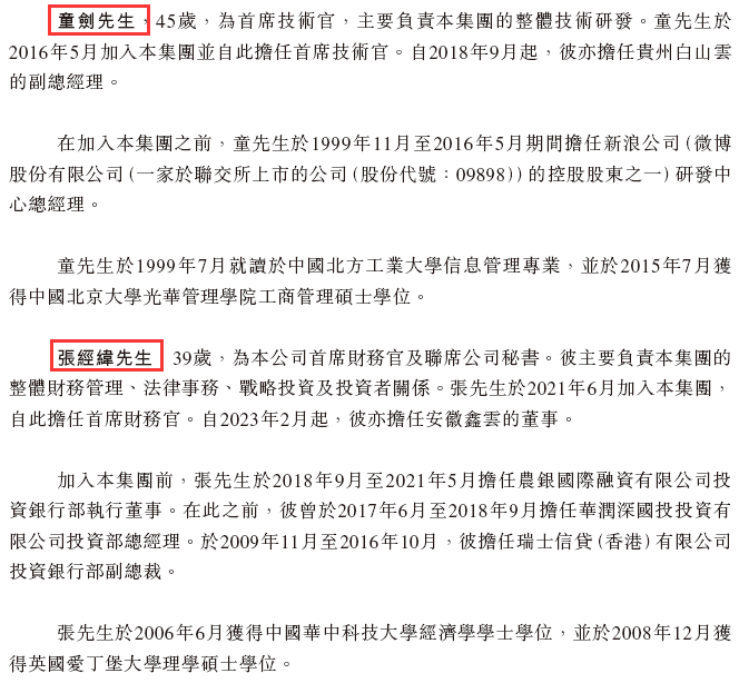 除执行董事外,高管还包括首席技术官童剑先生,首席财务官张经纬先生。