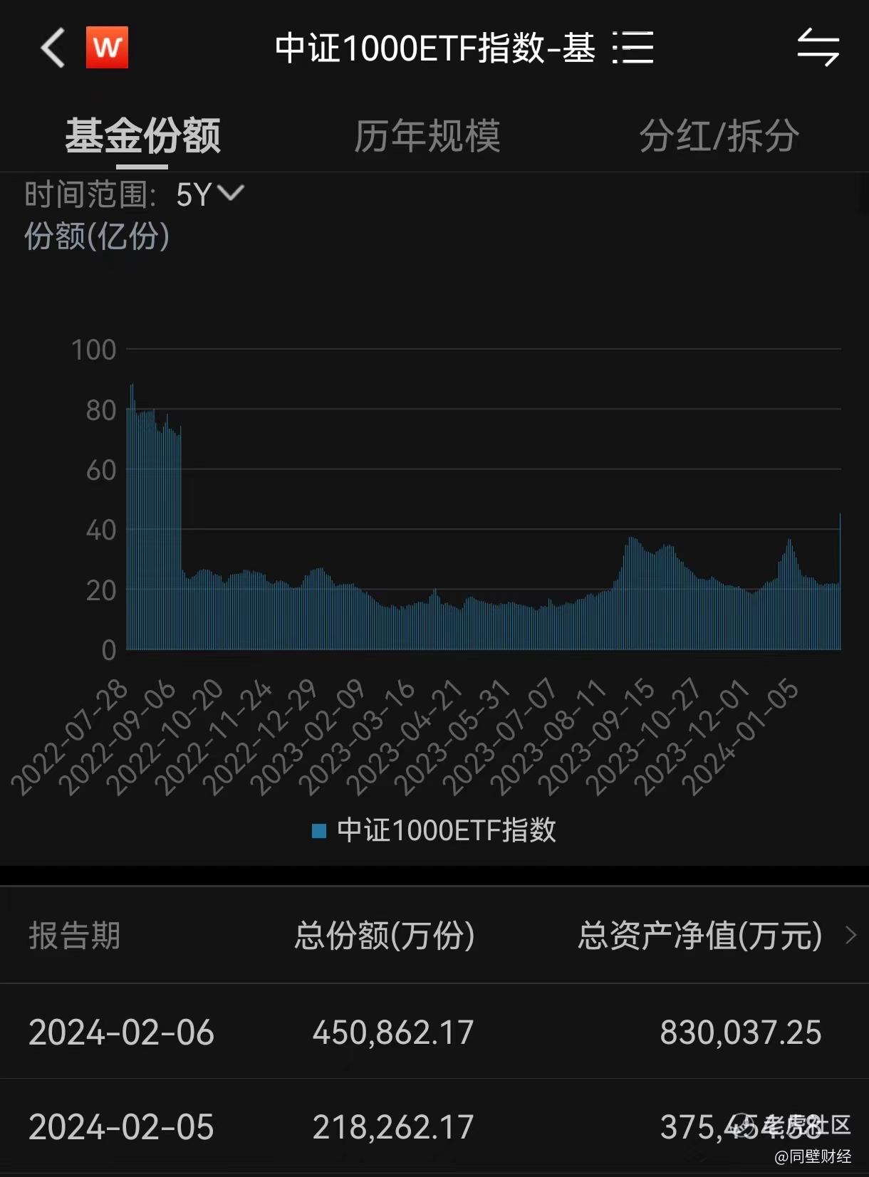 (图片来源:wind) 截至2月6日,中证1000ETF指数(560010)份额超45.08亿份,最新规模超83亿元。