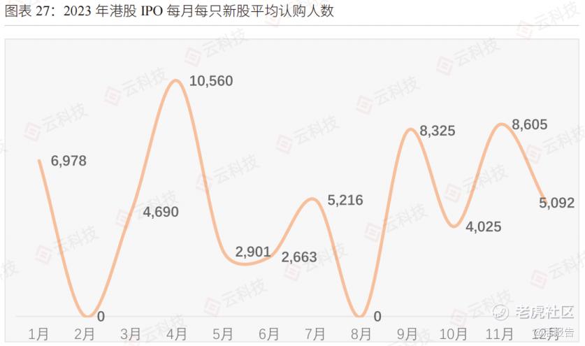 按照时间来看,2023年2月和8月为新股上市空窗期,认购人数为零,4月参与认购的人数最多,平均每只新股有约1.06万人认购,随着时间的推移,认购人数逐渐减少,并于6月降到全年低位,新股认购人数不到2,700人,之后下半年认购人数略有回升。
