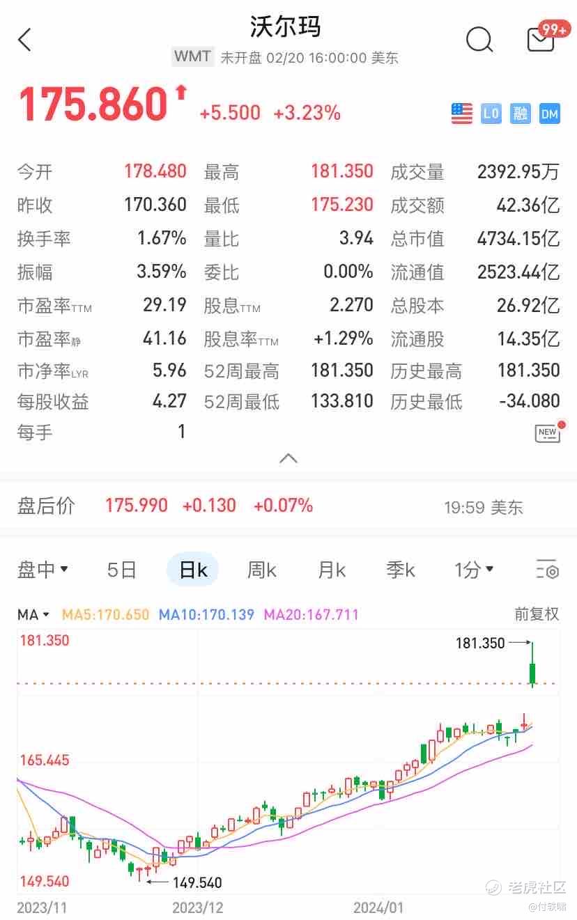总体而言,沃尔玛2024财年Q4的财报展现了其在全球零售市场的强大竞争力和稳健经营能力。面对复杂多变的市场环境,沃尔玛通过持续优化业务结构、加强电子商务布局、提升会员服务等方式,实现了营收和EPS的稳健增长。未来,随着全球经济形势的逐步好转和消费者需求的进一步释放,我们有理由相信沃尔玛将继续保持其市场领先地位并实现更加优异的成绩。$沃尔玛(WMT)$