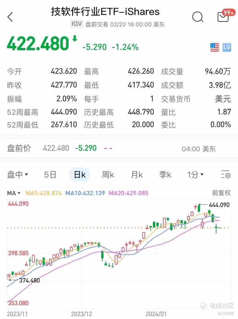 通过查看IGV的K线图,我们可以发现其价格走势呈现出一定的波动性。然而,在长期趋势上,IGV的价格呈现出稳步上涨的态势。这表明投资者对科技软件行业的信心不断增强,对IGV的投资价值持乐观态度。