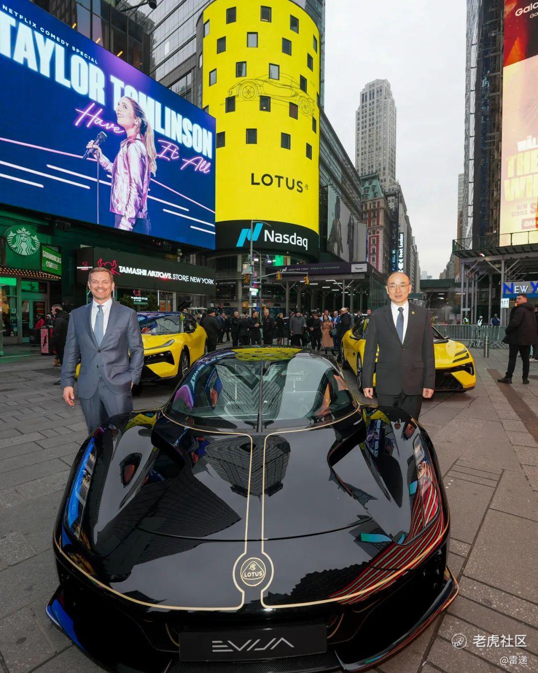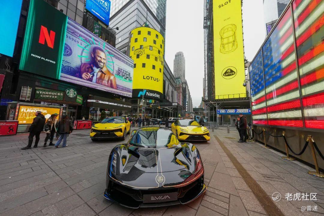 路特斯品牌标志性纯电车型——Evija、Eletre和Emeya也在纳斯达克交易所外的时代广场亮相,展示了路特斯国际化的决心。