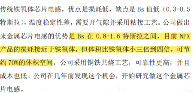 前者具有高饱和、低损耗及高耐压等优异性能,是车载电感器件的极佳选择,已获台系电感厂商的认可; 后者则已从实验转向批量生产,且通过多家客户的验证与评估,性能指标上有望打破日企垄断。