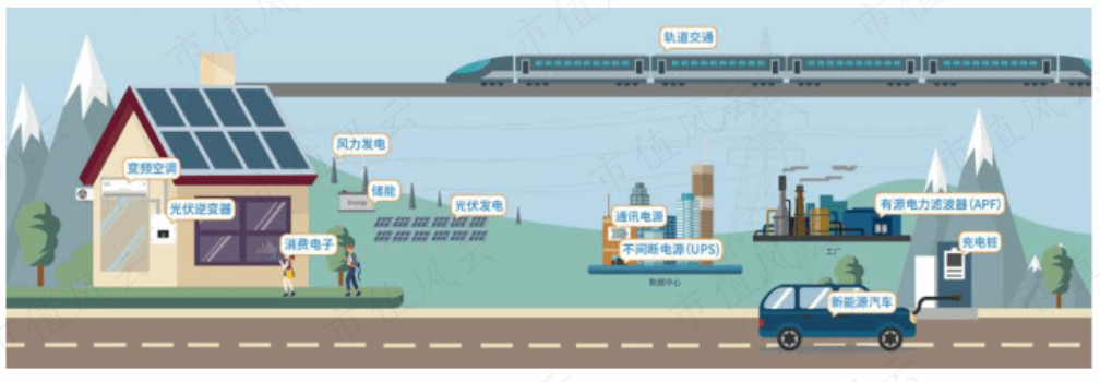可以说,合金软磁粉芯是综合性能最好的软磁材料之一,也据此成为中高频率、高功率电感的优选材料,被广泛应用在光伏发电、变频空调、新能源汽车、充电桩、数据中心、储能、消费电子、轨道交通等领域。