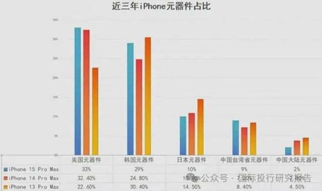 IPhone中国大陆元器件比例减至2%