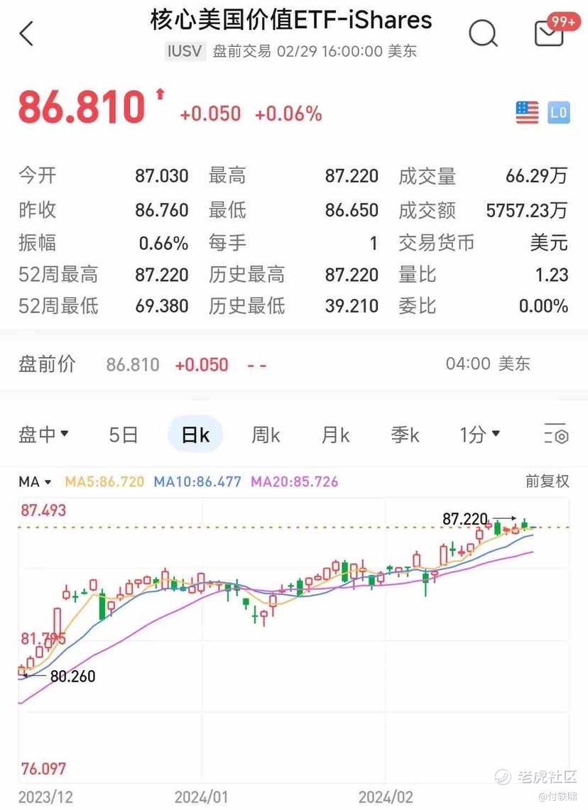通过观察IUSV的历史价格走势图,我们可以发现其呈现出一定的波动性。在短期内,IUSV的价格受到市场情绪、宏观经济数据等多种因素的影响,可能会出现上涨或下跌。但长期来看,IUSV的价格呈现出稳定的增长趋势,这与其所投资的股票的基本面表现密切相关。