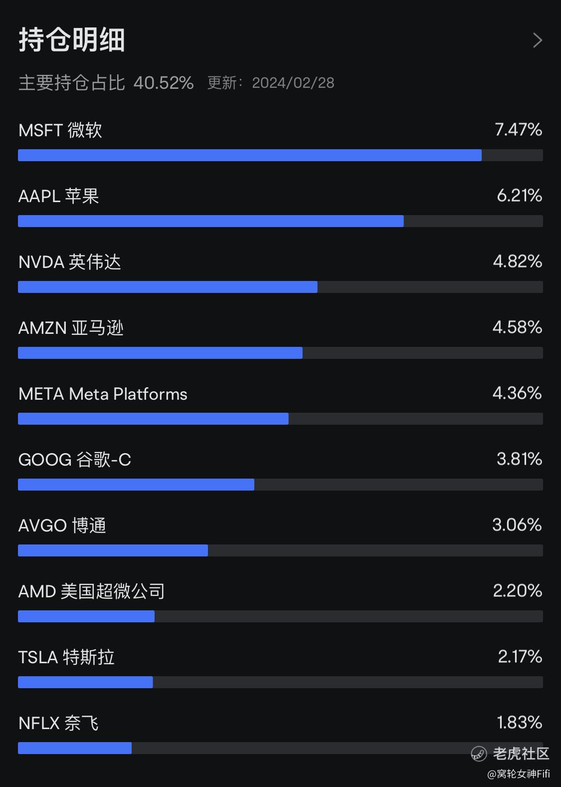 (六)持仓明细:微软,苹果占据前两位