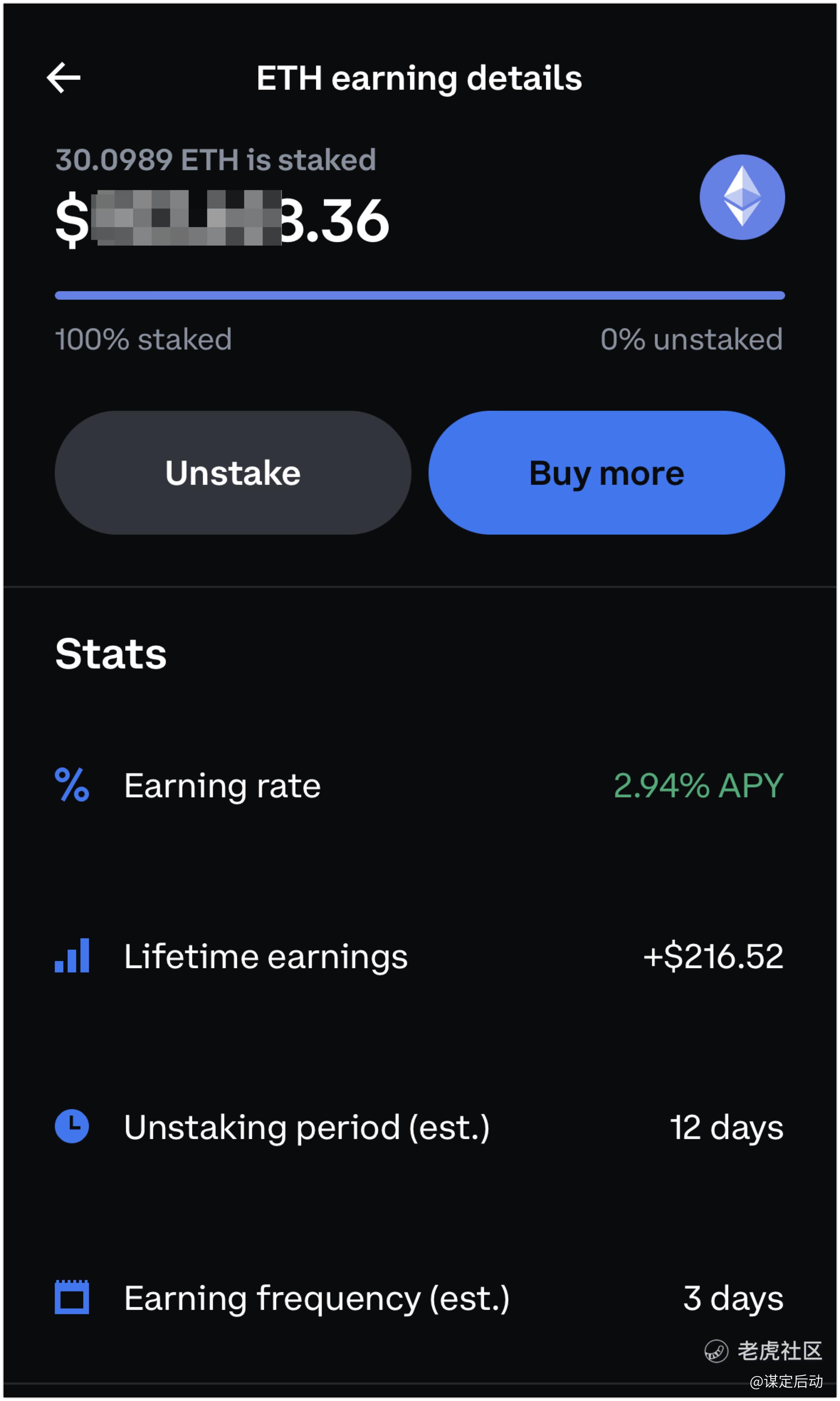 我自己持有一些以太币,现在都在质押赚利息。
