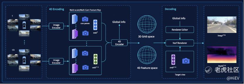 对于感知大模型,毫末从第一性原理出发,认为要实现端到端自动驾驶,感知就必须跟人类一样,同时具备识别二维纹理和三维结构、认识万物这三个条件,并且最好是纯视觉的。基于这样的原则,我们建立了自监督感知大模型,将车载摄像头的二维视频数据进行编码,然后通过NeRF渲染来预测视频的下一帧图像,构建了4D特征空间。再通过多模态技术将视觉信号与文本信号对齐,实现识别万物。