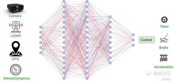 可见,端到端自动驾驶系统就像人类的大脑,通过眼睛、耳朵等传感器接受信息,经过大脑处理后,下达指令给手脚执行命令,整个系统简单的都没啥可介绍的……。但是这种简单也隐藏了巨大的风险,例如可解释性很差,无法像传统自动驾驶任务一样将中间结果拿出来进行分析;对数据的要求非常高,需要高质量的、分布多样的、海量的训练数据,否则AI就会实现垃圾进垃圾出。