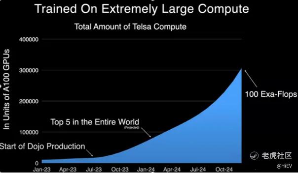 特斯拉通过分布在全球的几百万量产车,基于影子模式,每当自动驾驶决策与人类司机不一致时,就会采集并回传一个clip,已经累积了200P以上的数据,不管是数据规模、数据分布还是数据质量上都遥遥领先。为了能在云端处理这些数据,当前特斯拉拥有近10万张A100,位居全球top5,预计到今年底会拥有100EFlops的算力,并针对自动驾驶自研了Dojo,在算力上同样遥遥领先。
