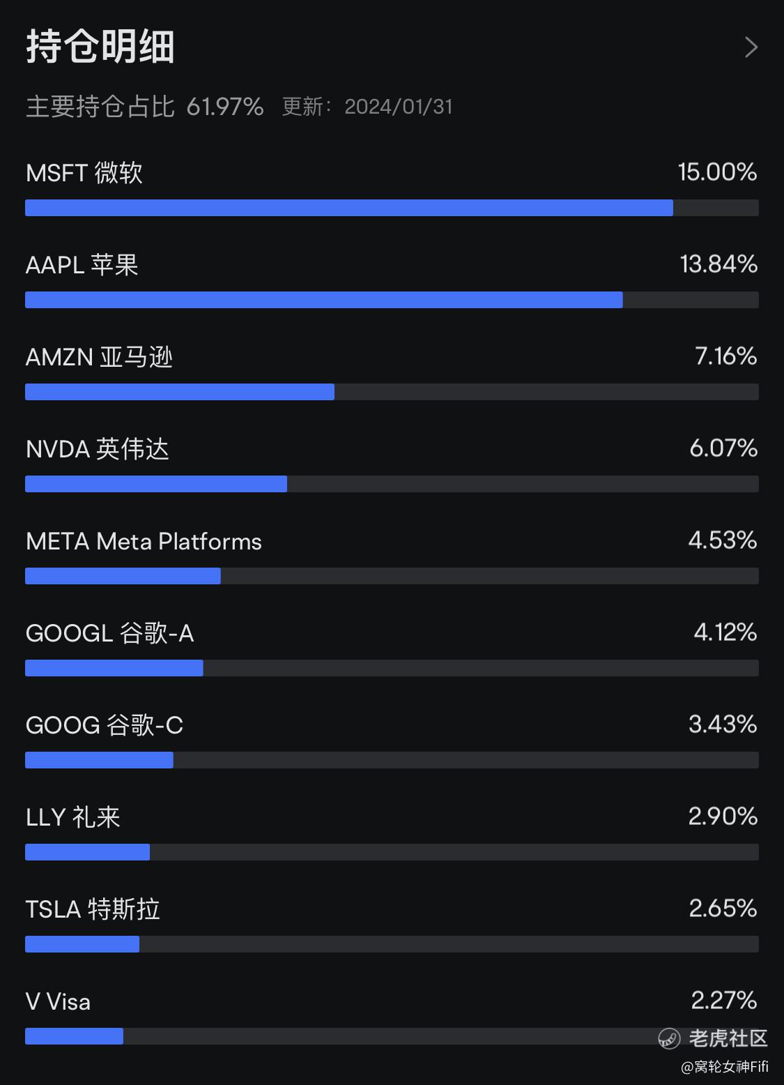 (四)持仓明细:持仓占比前两位时微软和苹果