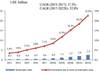 下图显示了2013年至2017年东南亚电动两轮车市场的历史零售额和零售额,以及2018年至2022年期间的预测: