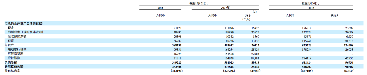 截至2016年和2017年12月31日以及2018年6月30日的汇总合并资产负债表数据:
