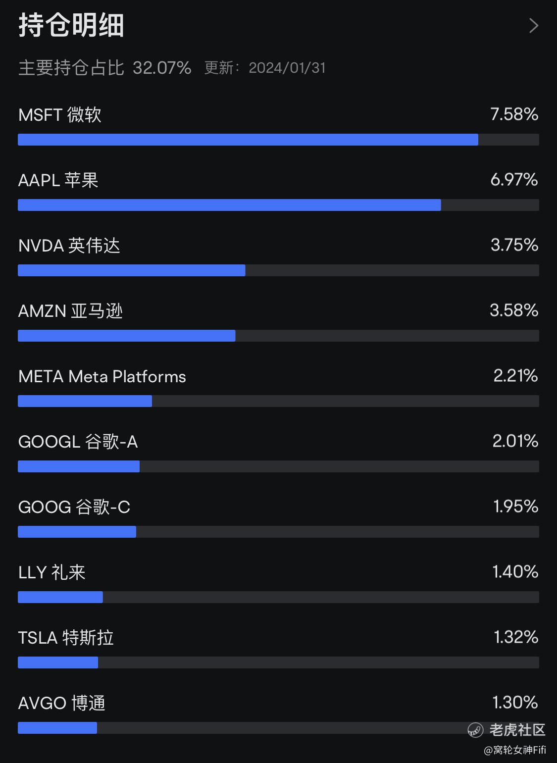 (四)持仓明细:持仓占比前两位是微软和苹果