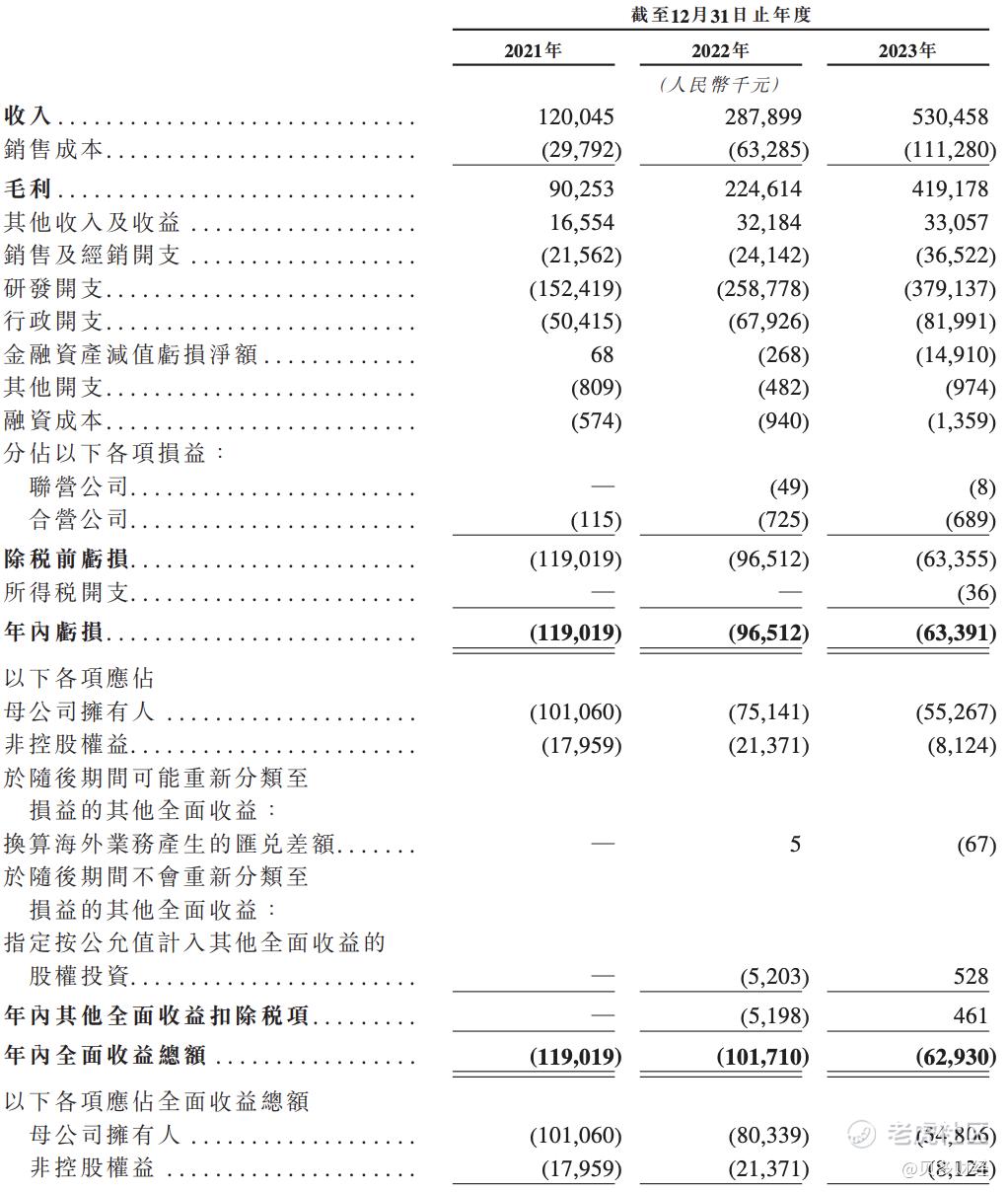 2021年、2022年和2023年,迅策科技的收入分别约为人民币1.20亿元、2.88亿元和5.30亿元,毛利分别约为9025.3万元、2.25亿元和4.20亿元,净亏损分别约为1.19亿元、9651.2万元和6339.1万元。