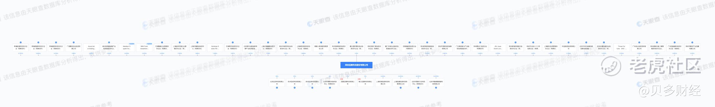 同时,腾讯通过深圳腾讯、广西腾讯分别持股0.04%、7.51%,KKR通过Accel Asia Holdings II持股6.32%,云锋基金,通过云锋新呈、云锋麒泰分别持股3.76%、2.26%,湖北高质量持股5.13%,恒生电子、高盛等也是迅策科技的股东。