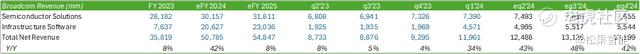 VMware 的加入对博通的基础设施软件销售额做出了重大贡献,该细分市场同比增长 153%,达到 4.6 亿美元(包含 VMware)。VMware 占该部门销售额的 38%,并帮助该部门的毛利率在 2024 年第一季度达到了 88%。
