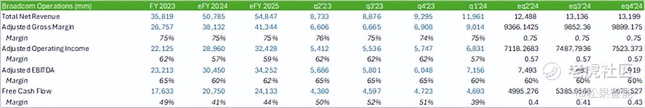 预测增长和运营,我预计博通将把重点转向收入增长,以利用人工智能的繁荣。我相信,这将在短期内对利润率构成轻微挑战,因为该公司专注于开拓人工智能市场份额。我预计 2025 财年营收增长将更为温和,重点将重新转向盈利能力。
