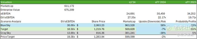 使用一系列估值和概率因素,我认为博通股票的估值应为 19.38 倍 eFY25 EV/EBITDA,股权价值为 600b 美元。我给予 AVGO 股票买入建议,目标价为 1,283 美元/股。