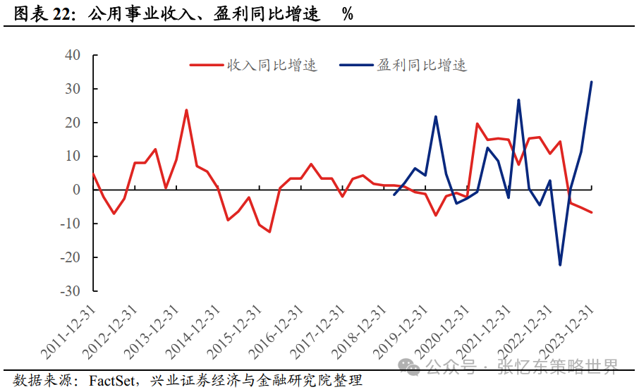 五、公用事业:盈利强劲增长,2023Q4同比增速为近5年最大值