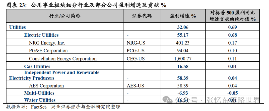 五、公用事业:盈利强劲增长,2023Q4同比增速为近5年最大值。电力相关板块中的传统能源商NRG Energy以及新能源商Constellation Energy是主要贡献。