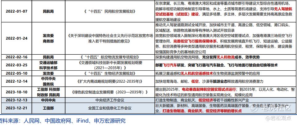 2023 年 12 月,中央经济工作会议将低空经济视为“战略性新兴产业”。2024 年 1 月《无人驾驶航空器飞行管理暂行条例》生效,我国无人机产业进入“有法可依”的规范化发展阶段。2024 年初,17 省/直辖市/自治区将“低空经济”写入政府工作报告。3 月《政府工作报告》再提低空经济,定位“新增长引擎”。在一系列鼓励政策支持下,多家汽车大厂布局,国内低空经济和飞行汽车步入快速发展阶段。