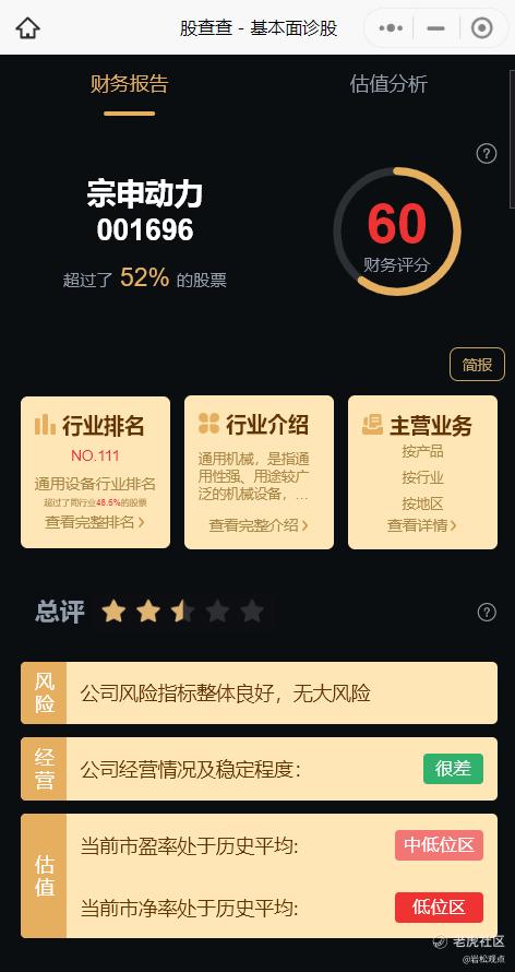 公司风险指标整体良好,无大风险;经营情况及稳定性表现很差;22倍滚动市盈率处于历史平均中低位区。