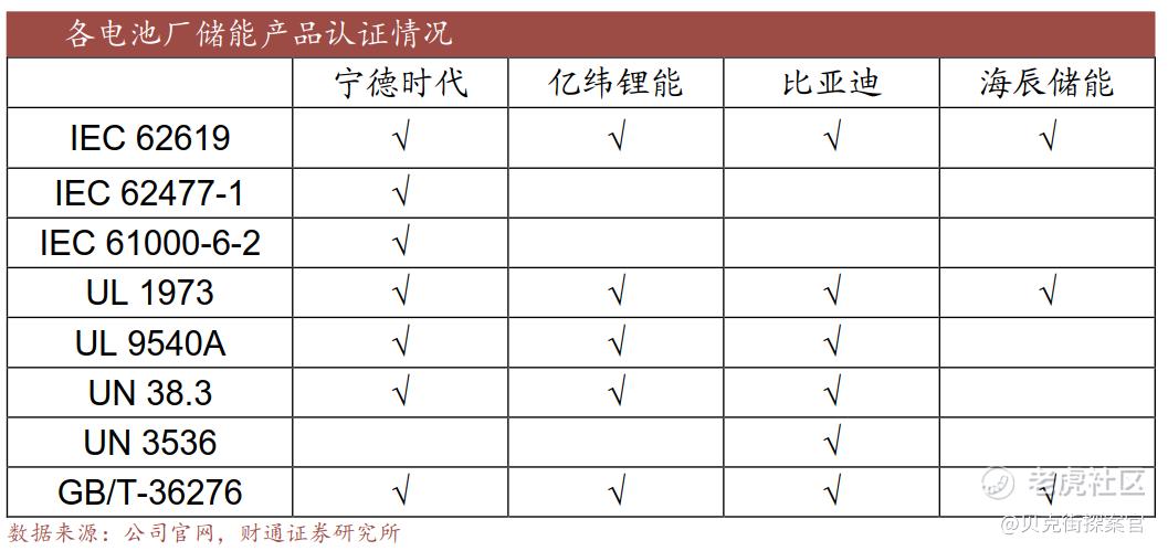 在此技术保障下,公司储能产品已通过欧盟 CE、联合国 UN38.3 以及多个美国UL的安全认证,可在欧美市场直接开拓客户。