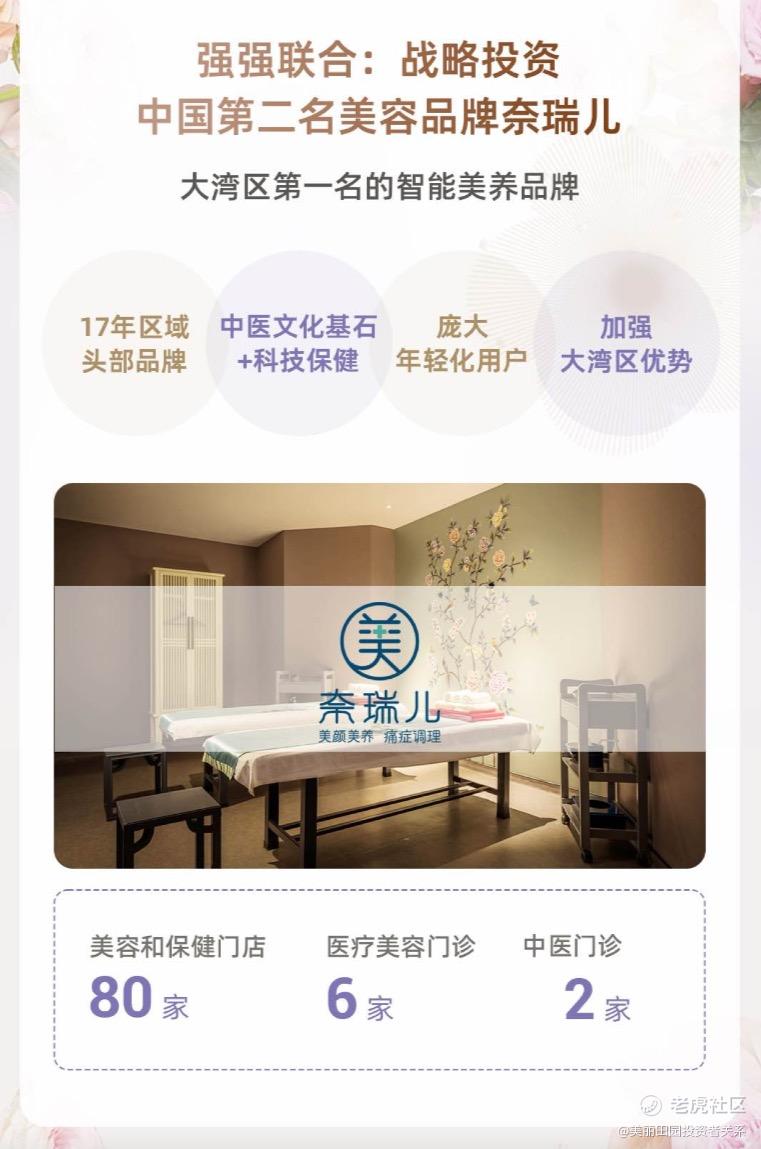 战略投资中国第二大传统美容服务提供商奈瑞儿。