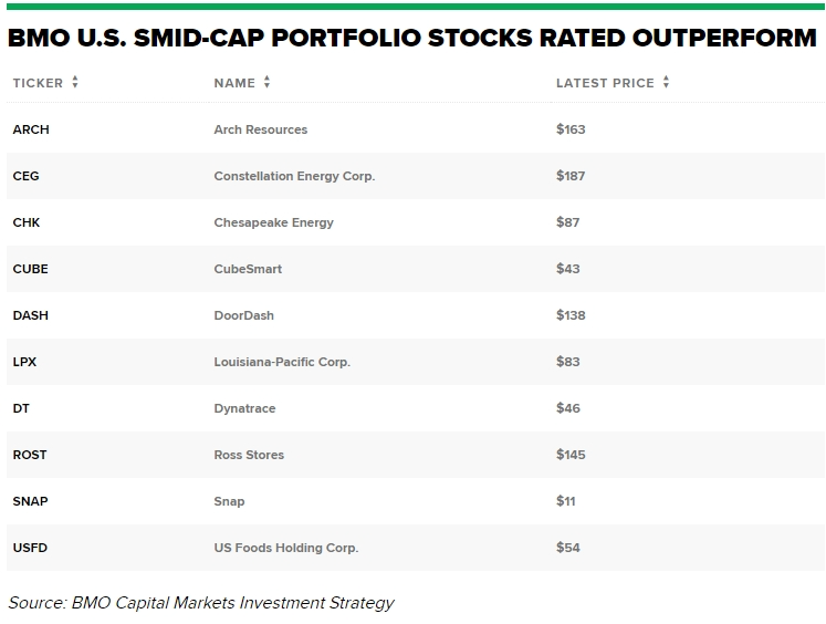 BMO的其他中小盘股还包括社交媒体公司Snap(SNAP)、折扣零售商Ross Stores(ROST)以及电力和天然气供应商Constellation Energy(CEG)。