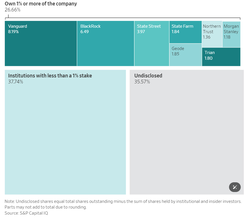 因此,以Bob Iger为首的迪士尼公司方面也需要获得更多股东的支持才能稳住管理权。目前,根据华尔街日报的消息,外部股东 $贝莱德(BLK)$ 和 $普信集团(TROW)$ 分别持股6.5%和0.5%,都支持公司。而加州养老金(CalPERS)等则支持Trian。