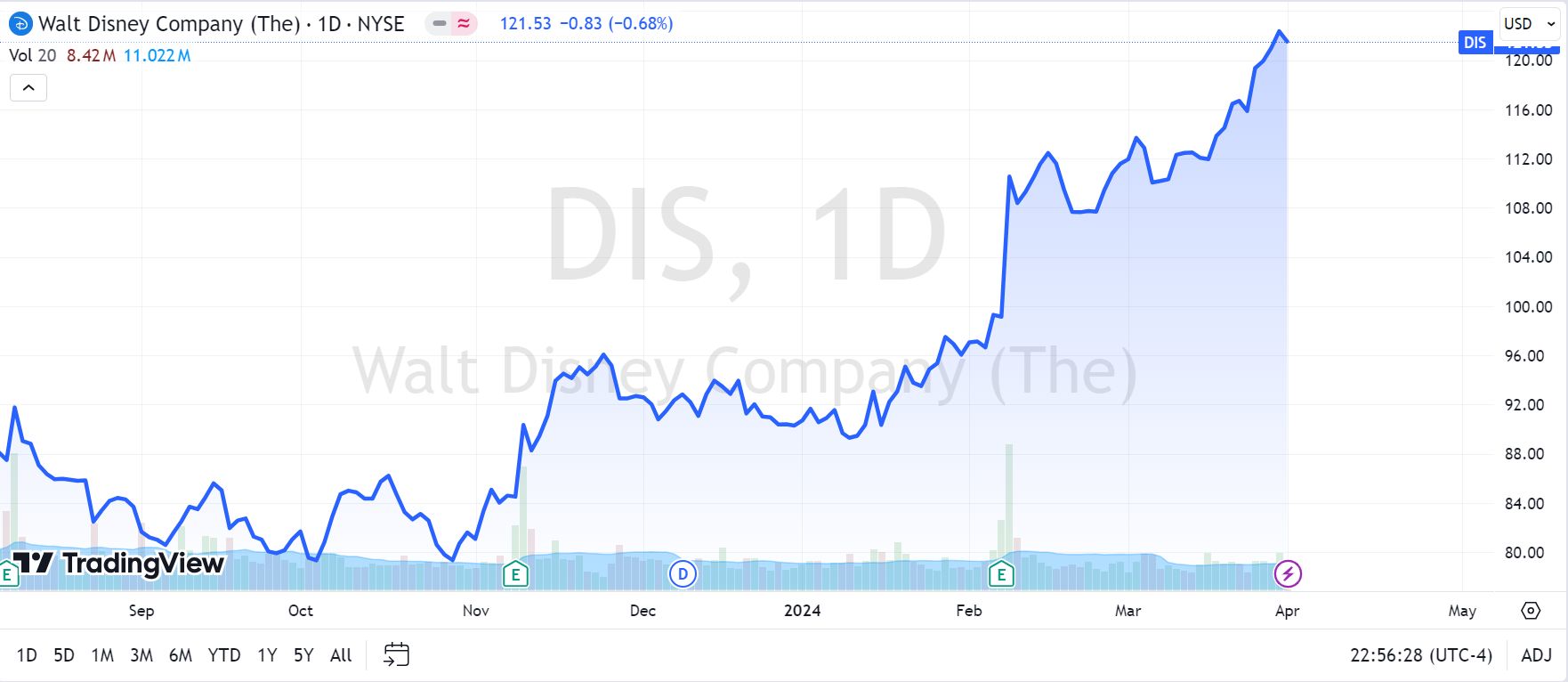 当然,迪士尼现在主要的问题不是应对这些争议,而是代理权之战。因此迪士尼最近的股价也表现得比较强势。