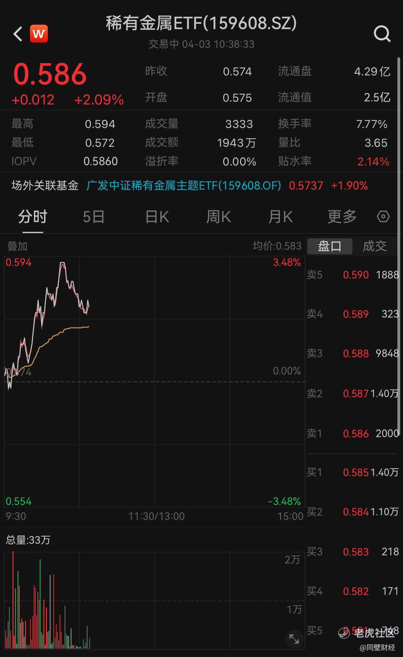 截至10:38,稀有金属ETF(159608)盘中大涨2.09%,连续5天上涨,成交额达1943万元,市场交投活跃,成交额持续扩大。