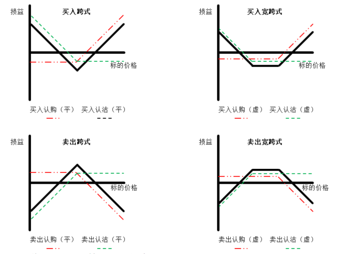 (1)买入跨式/买入宽跨式:买入平值认购+买入平值认沽/买入虚值认购+买入虚值认沽
