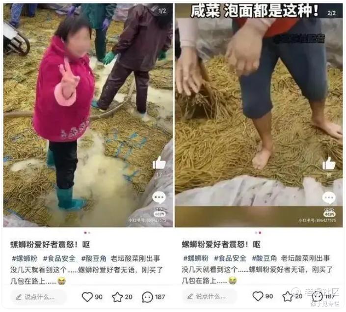 螺霸王所在的螺蛳粉赛道也不例外。例如,前文所述的“增臭剂”,很显然就是商家为了提升产品的“口味”与销量,而采用的“过激”手段。而继315老坛酸菜曝光之后,也有网友爆料螺蛳粉酸豆角也出现了同样脚踩的情况,随即引发广泛关注。
