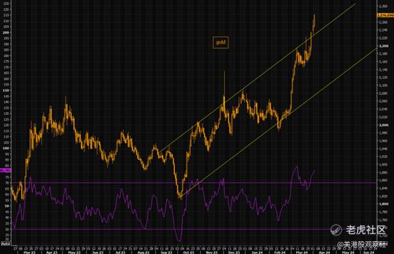 一个风险与黄金价格有关——从下图中可以明显看出,当前的价格相当过热(看一下RSI指标)。我们可能正处于回调的边缘,而这种回调的持续时间仍不确定。