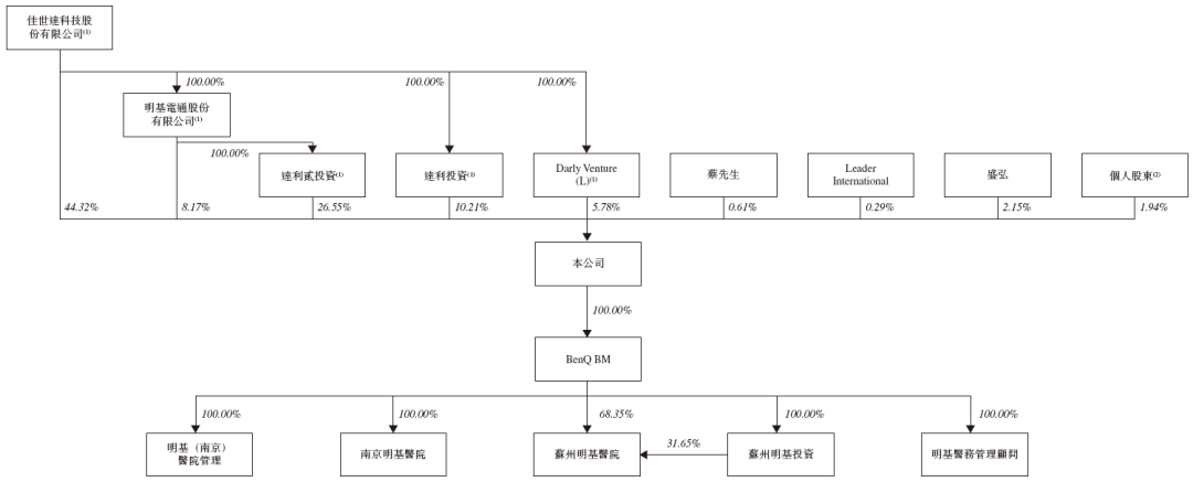 招股书显示,明基医院在上市前的股东架构中,