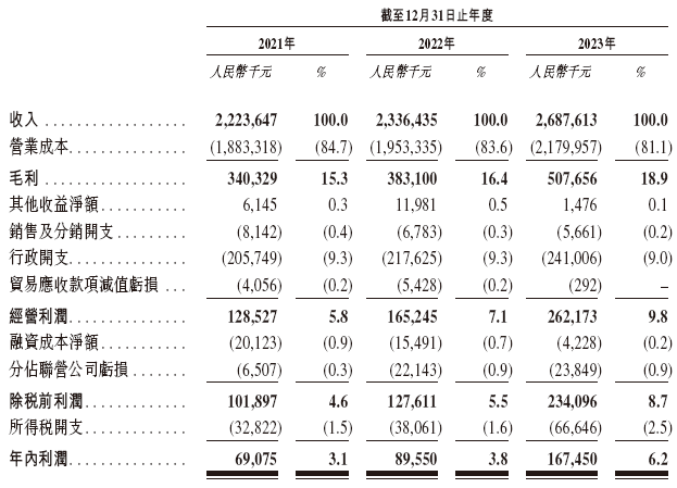 财务数据显示,在过去的2021年、2022年和2023年,明基医院的营业收入分别为人民币22.24亿、23.36亿和26.88亿元,相应的净利润分别为人民币0.69亿、0.90亿和1.67亿元,相应的经调整净利润分别为0.69亿、0.90亿和1.67亿元人民币。