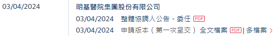 明基医院招股书链接: