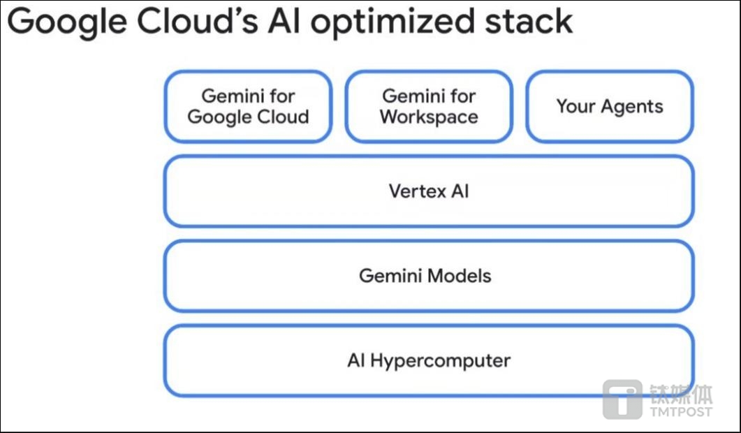 从整体来说,Google Next 2024上展现了整个谷歌云构建的 AI 开放和垂直优化技术栈。