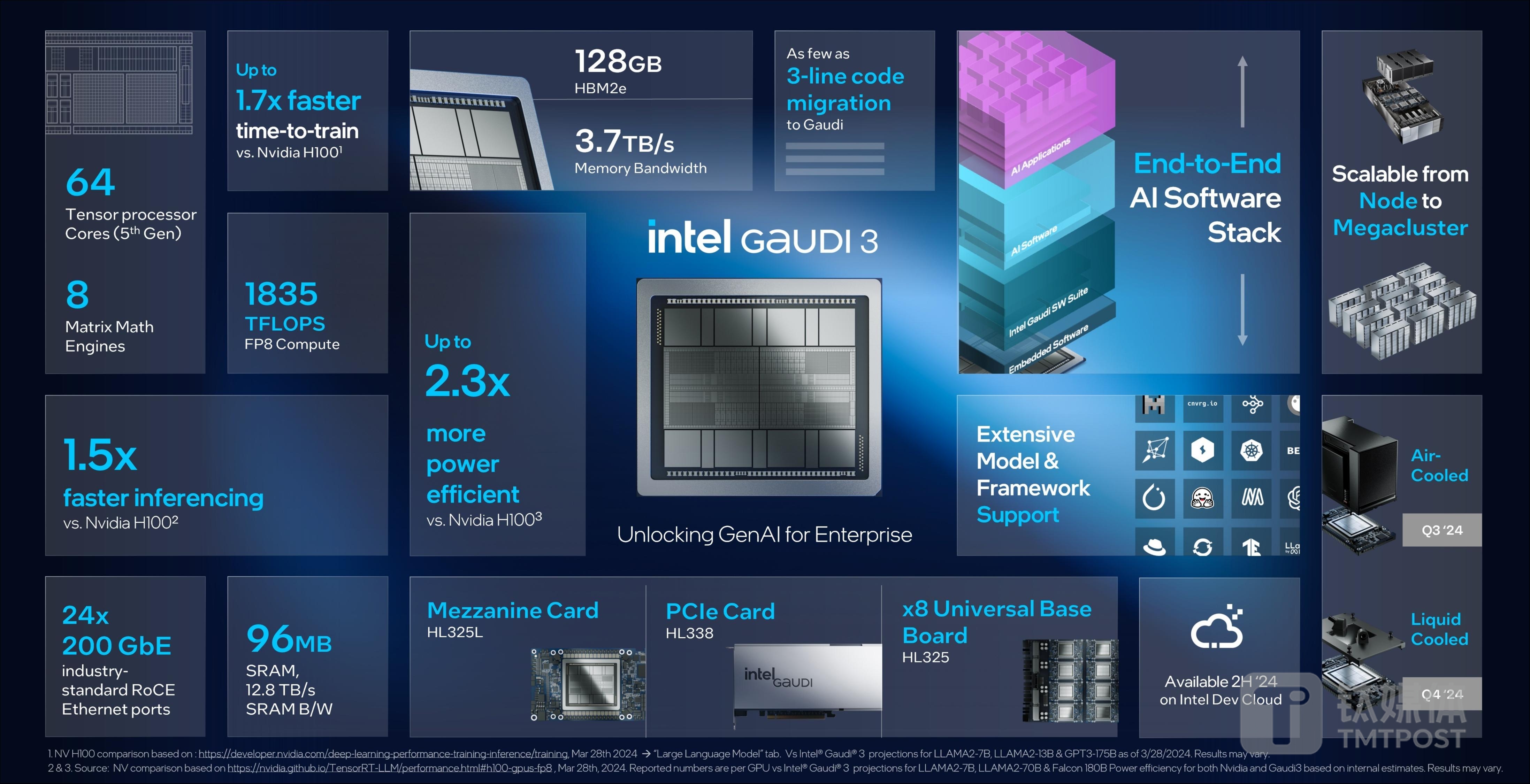 英特尔预计,Gaudi 3将于2024年第二季度起出货,戴尔、惠普、联想、超微电脑等企业将成为首批客户。