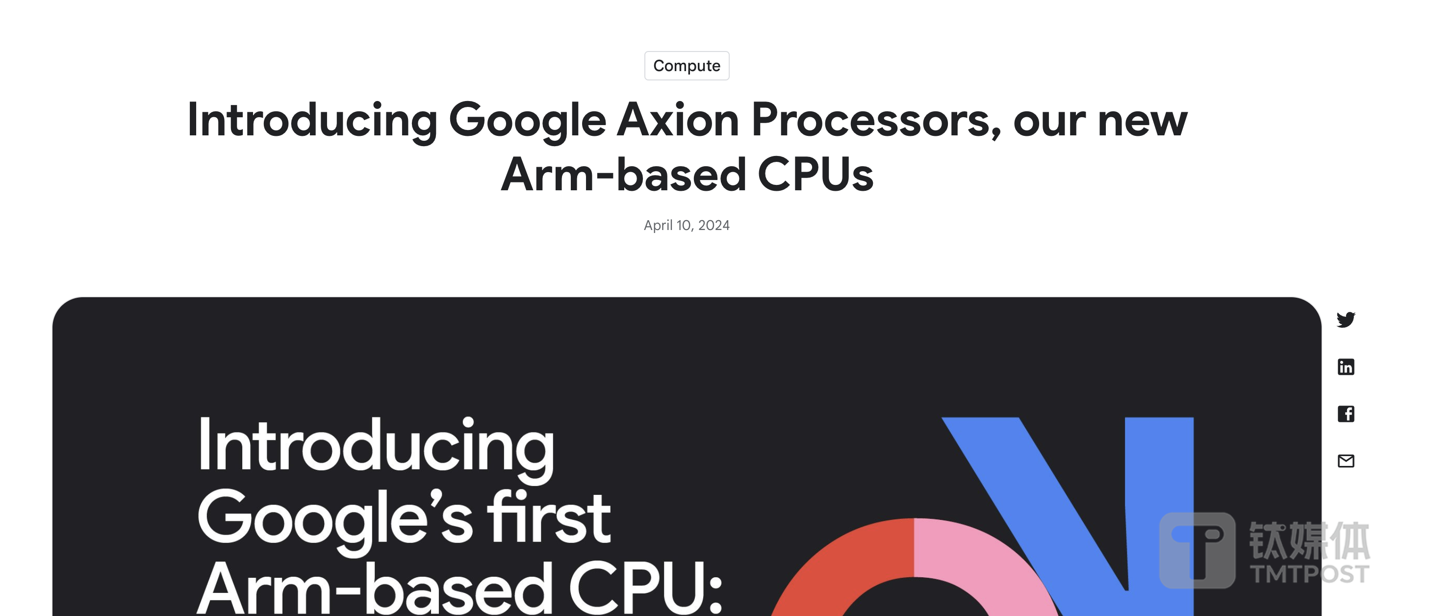 美东时间4月9日周二,谷歌在今年的年度云计算大会Cloud Next 2024上宣布推出一款基于Arm架构的数据中心芯片Google Axion,以及更新TPU v5p芯片。