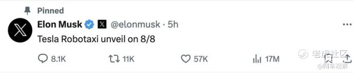 虽然消息是假的,但或许是看到大家对无人驾驶出租车项目的兴趣十分浓厚,马斯克在嘲讽完路透社后,紧接着就放出了8月8日发布Robotaxi项目的消息。